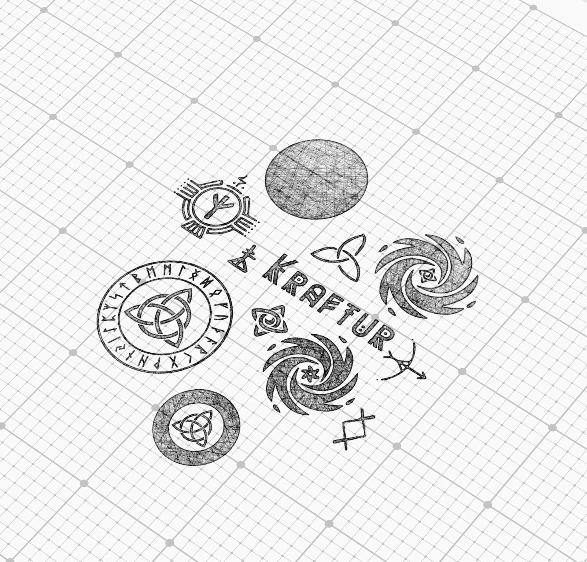 A partir de una investigación y exploración de la simbología nordica, la idea fue dar con un símbolo tipo talismán que diera la idea de invocación.