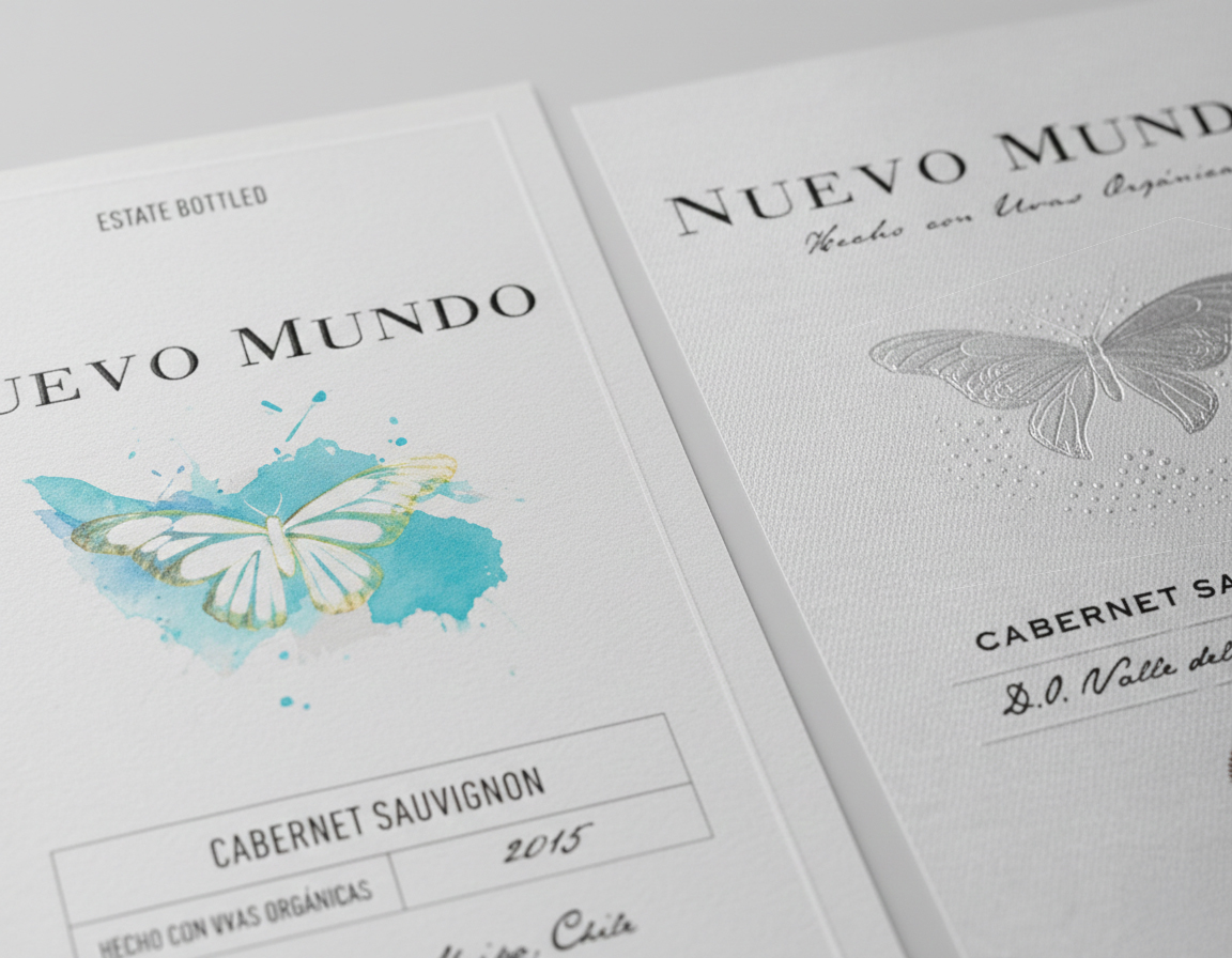 If “Nuevo Mundo” (New World) references southern hemisphere wines versus the European “Old World,” the label should also express this differentiation: a fresh, modern visual identity that doesn’t imitate European conventions.